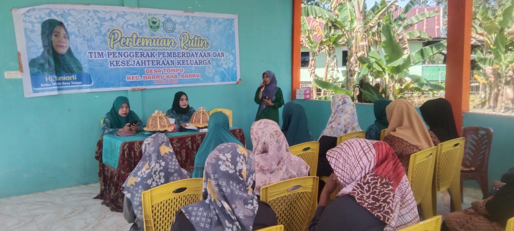 Tompo, 22 April 2025 — Mahasiswa Kuliah Kerja Nyata (KKN) STAI Al Gazali Barru Angkatan XXVI yang sedang melaksanakan pengabdian di Desa Tompo menghadiri acara Pertemuan Rutin Tim Penggerak PKK Desa Tompo pada hari Selasa, 22 April 2025.