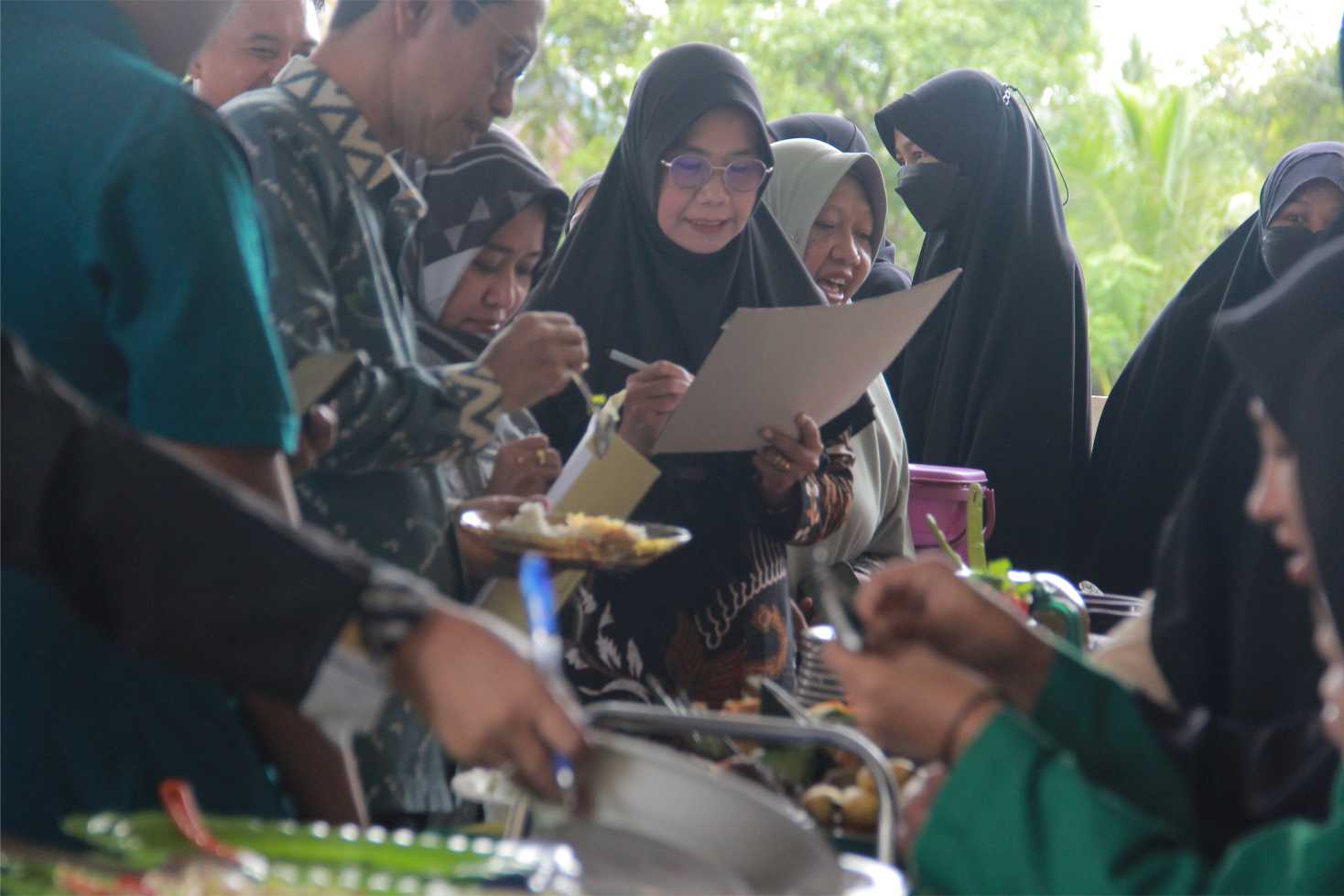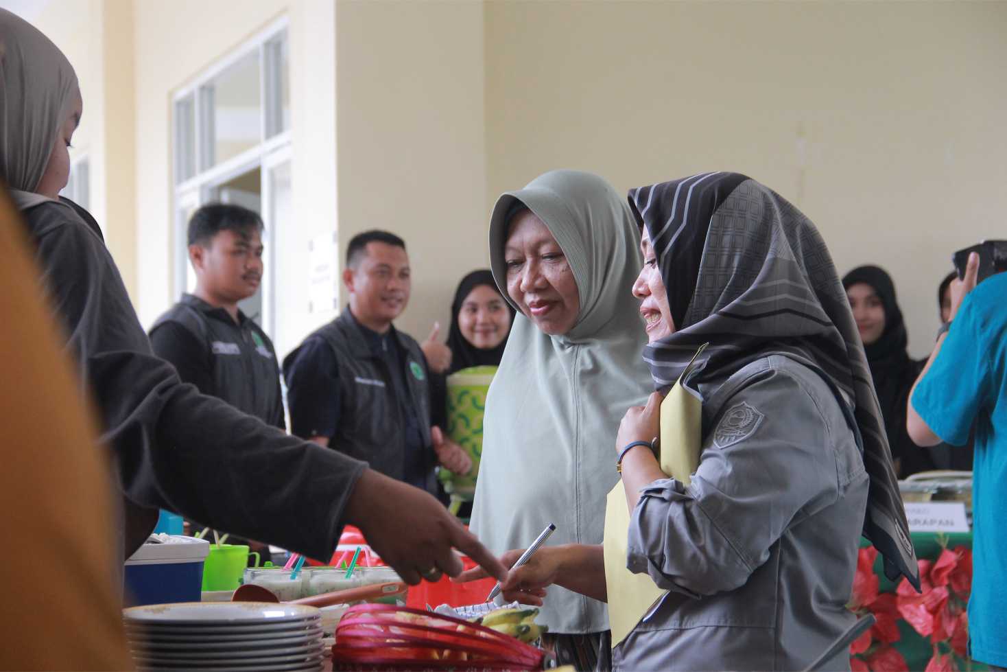 Setelah prosesi penutupan dan penyampaian kesan pesan, kegiatan berlanjut dengan santap bersama. Para tamu undangan menikmati beragam menu makanan sehat yang telah disajikan mahasiswa. Suasana hangat dan penuh kebersamaan semakin menambah kekhidmatan acara ini.