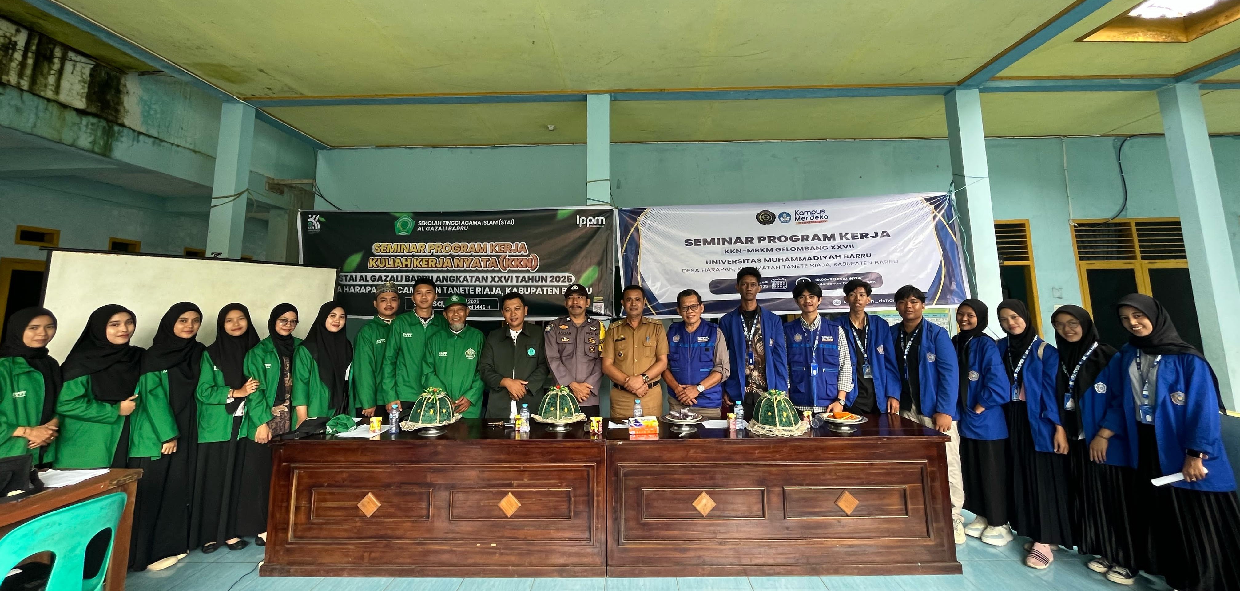 Harapan,15 April 2025 – Mahasiswa Kuliah Kerja Nyata (KKN) STAI Al Gazali Barru Angkatan XXVI Desa Harapan Kecamatan Tanete Riaja Kabupaten Barru, Sukses Menggelar Seminar Program Kerja di Kantor Desa Harapan Pada Hari selasa. Seminar ini dihadiri oleh Kepala Desa, Dosen Pembimbing, Bhabinkamtibmas, Koordinator Kecamatan, Kepala Dusun, Ketua BPD, Ketua RT, Staf Desa, Imam Masjid, Ketua Majlis Ta’lim, Tokoh Masyarakat, dan Tokoh Pemuda.