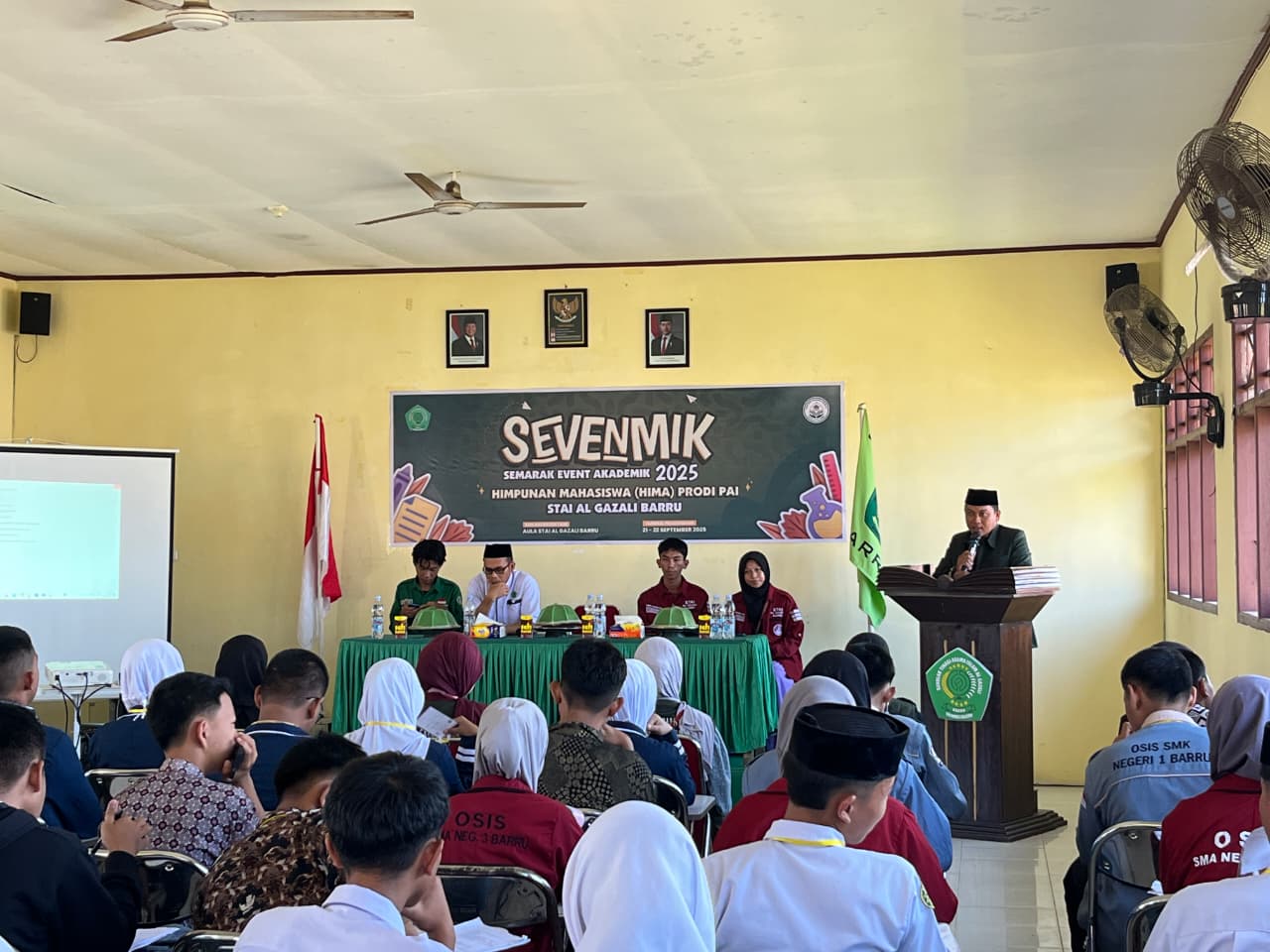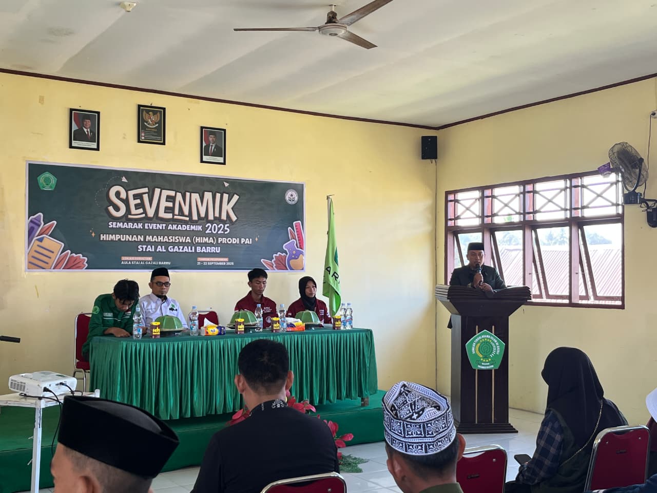 Barru, 21 September 2025 – Himpunan Mahasiswa (HIMA) Program Studi Pendidikan Agama Islam (PAI) STAI Al Gazali Barru resmi membuka SEVENMIK (Semarak Event Akademik) 2025. Kegiatan ini dibuka secara resmi oleh Wakil Ketua 1 STAI Al Gazali Barru, Muhammad Shaleh, S.Pd.I., M.Pd., bertempat di Aula STAI Al Gazali Barru.