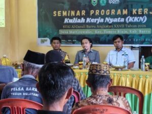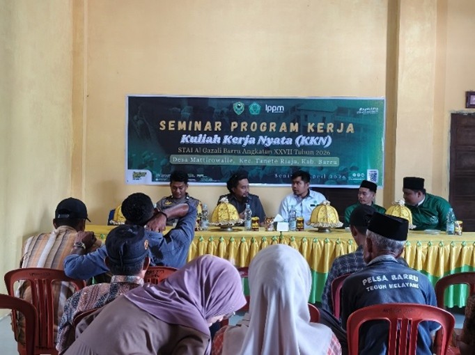 Mattirowalie, 06 April 2026-Mahasiswa Kuliah Kerja Nyata (KKN) STAI Al-Gazali Barru Angkatan XXVII sukses menggelar Seminar Program Kerja di Aula Kantor Desa Mattirowalie, Kecamatan Tanete Riaja, yang dihadiri oleh sejumlah tokoh penting dan masyarakat setempat. Kegiatan ini menjadi tonggak awal pelaksanaan berbagai program pengabdian masyarakat yang dirancang oleh para mahasiswa KKN STAI Al Gazali Barru Angkatan XXVII.